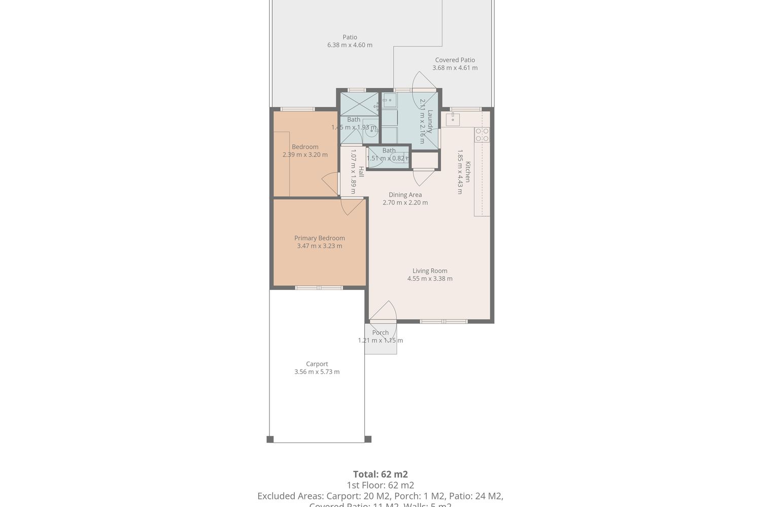 - Private, low-maintenance outdoor area